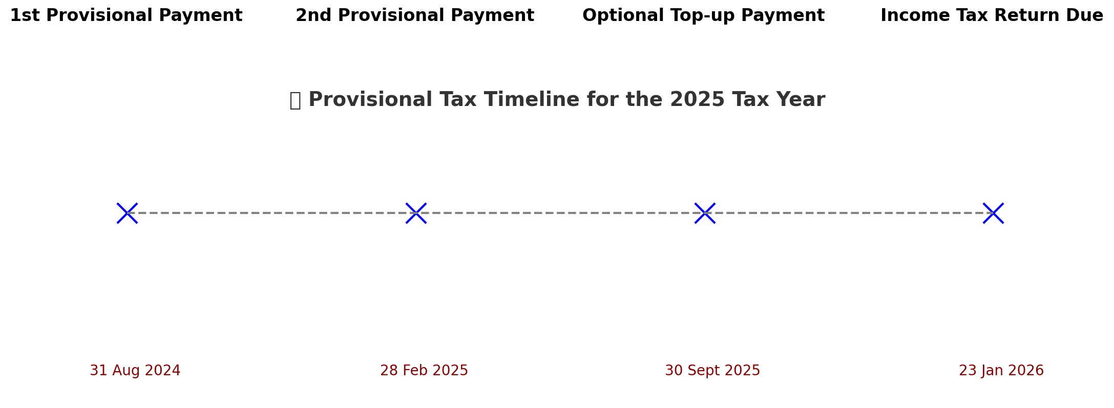 Provisional tax is a system where you pay your tax in advance based on your estimated income for the year. It helps spread out your tax payments instead of paying a lump sum at the end of the tax year.